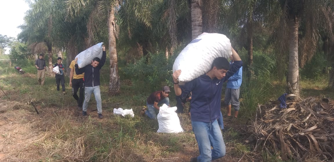 Recolección de coco de la parcela experimental del Colegio Técnico San Pedro Apóstol